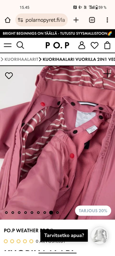 30 €POP weather pro välikausihaalari 80Koko 80 Polarn O. PyretSipoo, Söderkulla, Uusimaa1 pvLisää suosikiksi.