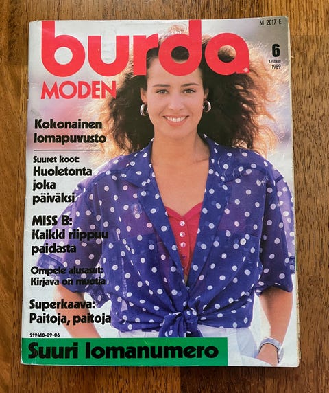 7 €Käsityölehti Burda 6/1989 : Lomapuvusto, MissB mallistoVantaa, Kirkonkylä-Veromäki, Uusimaa7 tLisää suosikiksi.