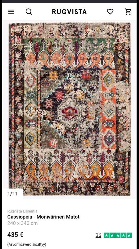 185 €Suuri värikäs matto 240 x 340 Turkki (tosi hyvässä kunnossa)Turku, Pohjola-Kastu, Varsinais-Suomi28.11.Lisää suosikiksi.