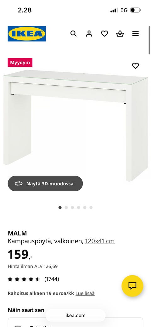 Antiikki ja taide (126)Auto-, vene- ja moottoripyörätarvikkeet (33)Elektroniikka ja kodinkoneet (26)Eläimet ja eläintarvikkeet (8)Koti ja sisustus (2 735)Lapset ja vanhemmat (85)Liiketoiminta ja palvelut (58)Piha ja remontointi (84)Urheilu ja ulkoilu (0)Vaatteet, kosmetiikka ja asusteet (7)Viihde ja harrastukset (11)