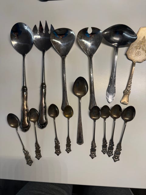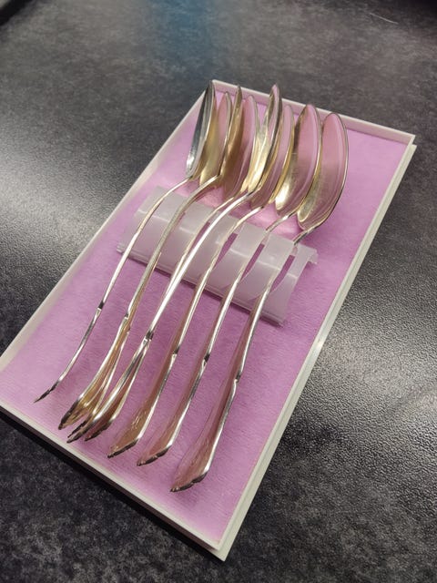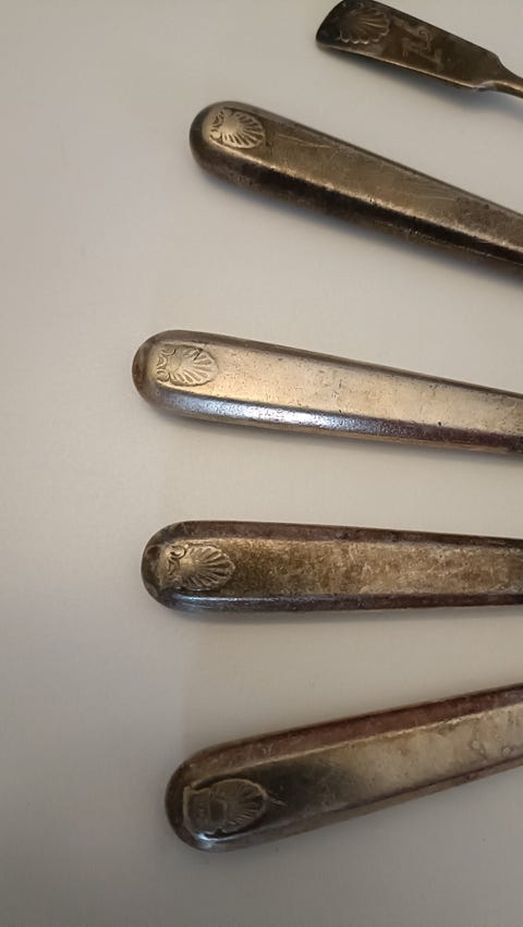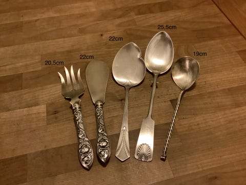 Jos hankit aterimia ja pöytähopeita käytettynä, muistathan että niitä kannattaa kiillottaa säännöllisesti. Netistä löydät runsaasti vinkkejä esimerkiksi hopean puhdistukseen. Toki vanhassa esineessä saa monen mielestä myös näkyä jonkin verran ajan patinaa. Myös oikea säilyttäminen auttaa pitämään vanhat hopeat kiiltävinä: pöytähopeat kannattaa säilyttää joko alkuperäisissä laatikoissa tai esimerkiksi puuvilla- tai minigrip-pusseissa, mieluiten valolta suojattuna.