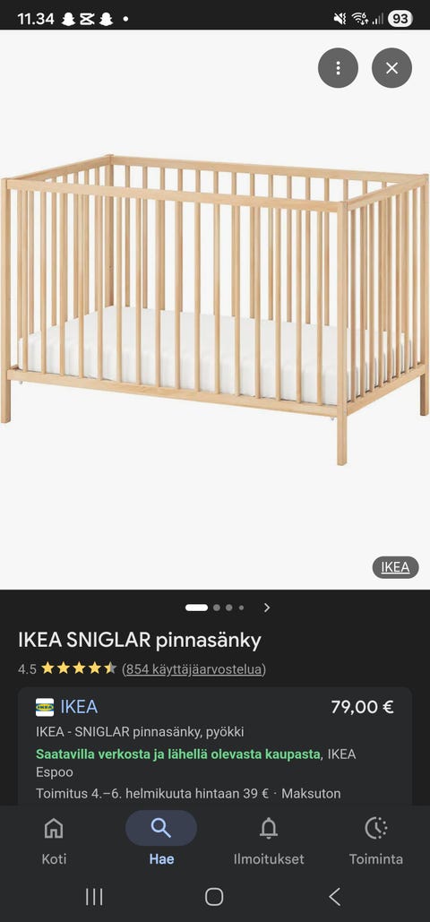 Vaikka vauvan nukkumapaikka voi aluksi olla äitiyspakkauksen laatikko, pinnasängyn ostos tulee ajankohtaiseksi viimeistään muutaman ensimmäisen kuukauden jälkeen. Sopiva pinnasänky tai muu lasten sänky voi löytyä myös käytettynä - Torissa on nytkin 3 034 ilmoitusta, joissa myydään näitä.