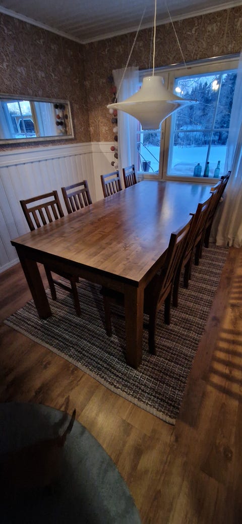 Ruokailuryhmä on usein melko arvokas hankinta ja usein kotona kovassa käytössä. Esimerkiksi taloudessa, jossa on yksi tai useampi pieni lapsi, ruokapöytään ja tuoleihin saattaa tulla naarmuja ja tahroja. Kannattaakin miettiä, voisiko käytetty pöytä olla omaan tarpeeseen riittävä ratkaisu. Ostamalla käytettyjä kodin kalusteita tuet myös kiertotaloutta!