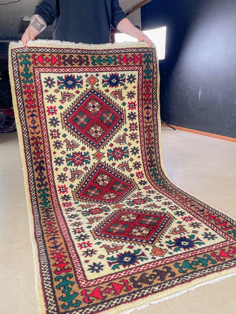 80 €Värikäs käsinsolmittu itämainen pikkumatto - 99 x 62 cmHelsinki, Eira - Hernesaari, Uusimaa13.1.Galleria MLisää suosikiksi.