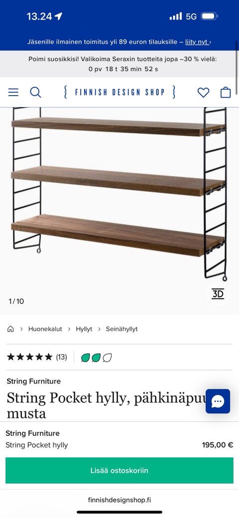 1 800 €Artek Kaari seinähylly REB 008, musta - tammi ArtekHelsinki, Kaartinkaupunki, Uusimaa6.10.Lisää suosikiksi.