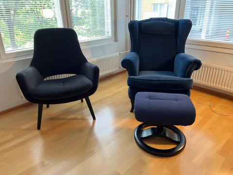 2 nojatuolia ja rahi
