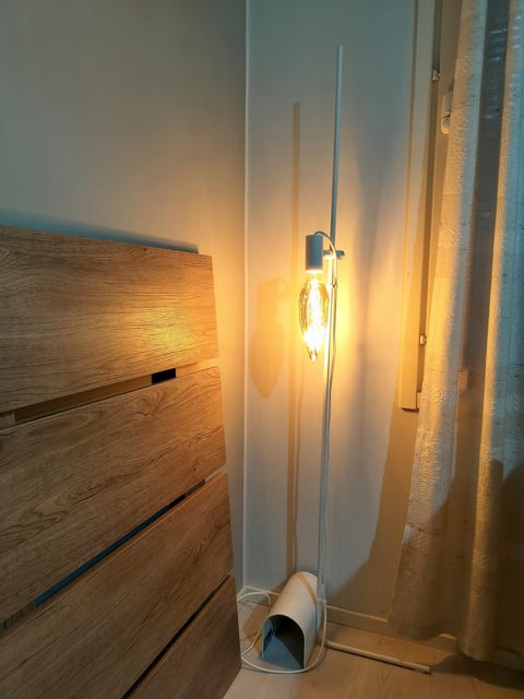 Sänky päädyllä.