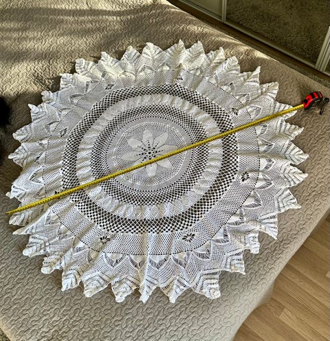 50 €Virkattu pyöreä beigen värinen pöytäliina, halk. 152cmHattula, Parola, Kanta-Häme15.10.Lisää suosikiksi.
