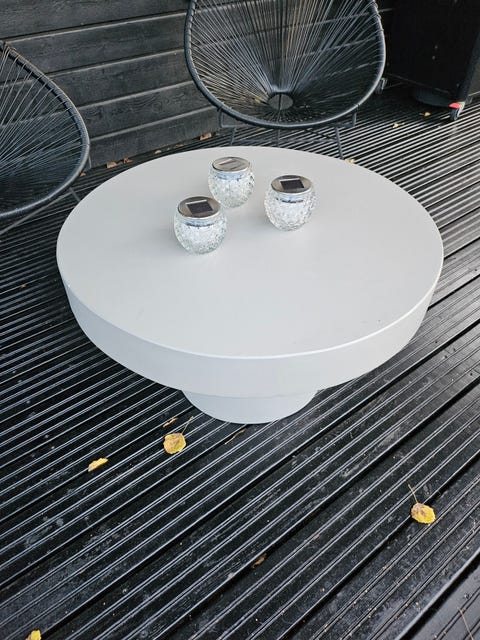 Kivipöytä sään kestävä.