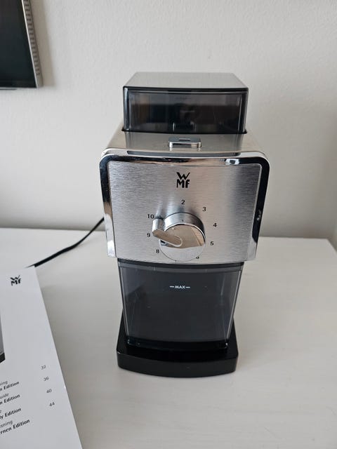 40 €WMF Stelio -kahvimylly, ruostumaton teräs (vähän käytetty)Riihimäki, Peltosaari-Patastenmäki, Kanta-Häme4.10.Lisää suosikiksi.