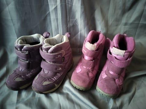 Laadukkaat, säänkestävät kengät ovat usein melko arvokkaita. Käytettynä voit saada esimerkiksi talvikengät halvemmalla ja voit jopa mahdollisesti ostaa varalle toisen parin talvikenkiä niitä aamuja varten, kun kengät eivät ole ehtineet kuivua edellisen illan lumileikkien jäljiltä ja päiväkotiin pitää päästä lähtemään. Myös välikausikengät, lasten lenkkarit ja kumisaappaat ovat kovalla käytöllä ja jäävät pieneksi lasten kasvaessa. Jos suunnittelet lasten kenkien ostamista käytettynä, kannattaa luonnollisesti katsoa ilmoituksesta kenkien kunto ja tutustua esim. Valmistajan sivuilta kokotaulukkoon.