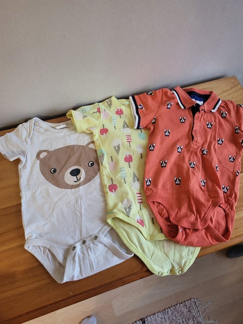 Vauvan body likaantuu usein, ja vaatekaappiin kannattaa ostaa iso varasto