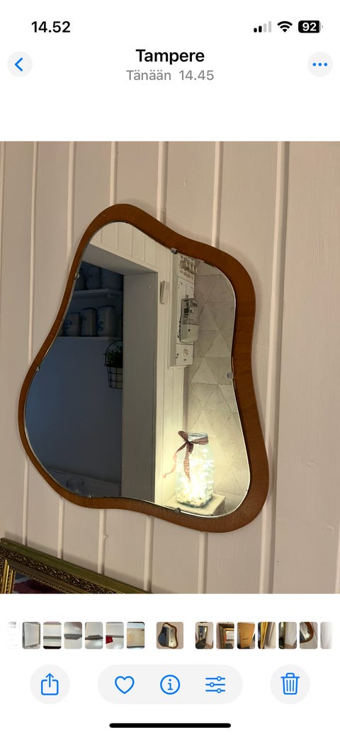 Peili on helppo tapa uudistaa huoneen sisustusta ja tunnelmaa: esimerkiksi suurehkon seinäpeilin avulla huoneesta tulee tilavamman tuntuinen. Tyyliltään peili voi täydentää huoneen sisustusta tai tuoda siihen persoonallisen lisän. Kannattaa kurkata, löytyisikö sopiva käytettynä - Torissa on nytkin 3 620 ilmoitusta, joissa myydään erilaisia peilejä.