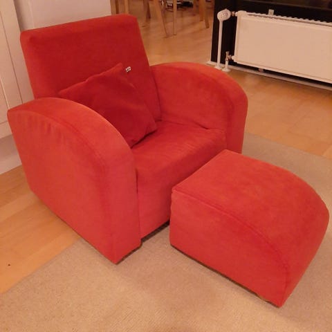 10 €Lasten nojatuoli ja rahi, punainen (mahtuu pieneenkin tilaan)Helsinki, Reimarla, Uusimaa18.12.Lisää suosikiksi.
