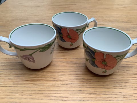 6 kpl. Mukeja.