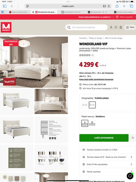 380 €Jyskistä ostettu, melkein uusi sänky. JyskKankaanpää, Kankaanpää Keskus, Satakunta6.2.Lisää suosikiksi.
