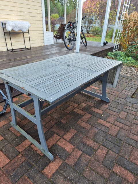 Ostan puisen puutarhapöydän