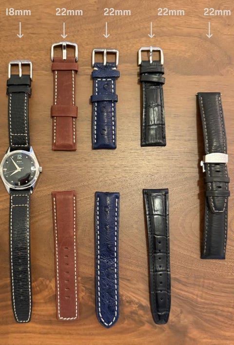 35 €Nahkaiset kellonrannekkeet (18mm,22mm) ja 1 kello.Watch straps & HMT Pilot watchVantaa, Nikinmäki, Uusimaa5 pvLisää suosikiksi.
