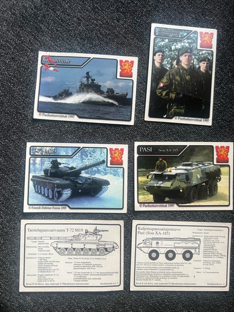 5 €Puolustusvoimat 1997 keräilykortteja 6kplKirkkonummi, Veikkola, Uusimaa24.11.Osta hetiLiikkeessä oleva kuorma-autoToriDiiliLisää suosikiksi.