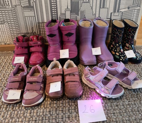 Laadukkaat, säänkestävät kengät ovat usein melko arvokkaita. Käytettynä voit saada esimerkiksi talvikengät halvemmalla ja voit jopa mahdollisesti ostaa varalle toisen parin talvikenkiä niitä aamuja varten, kun kengät eivät ole ehtineet kuivua edellisen illan lumileikkien jäljiltä ja päiväkotiin pitää päästä lähtemään. Myös välikausikengät, lasten lenkkarit ja kumisaappaat ovat kovalla käytöllä ja jäävät pieneksi lasten kasvaessa. Jos suunnittelet lasten kenkien ostamista käytettynä, kannattaa luonnollisesti katsoa ilmoituksesta kenkien kunto ja tutustua esim. Valmistajan sivuilta kokotaulukkoon.