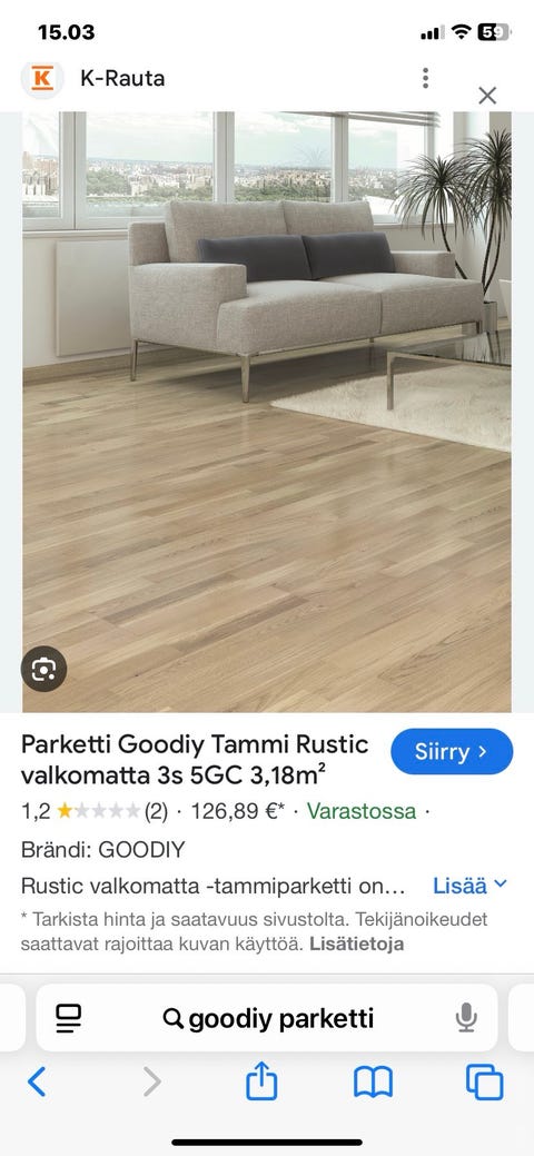 65 €Parketti Goodiy Tammi Rustic matta 3s 5GC 3,18m²Raisio, Raisio Keskus, Varsinais-Suomi27.10.Lisää suosikiksi.