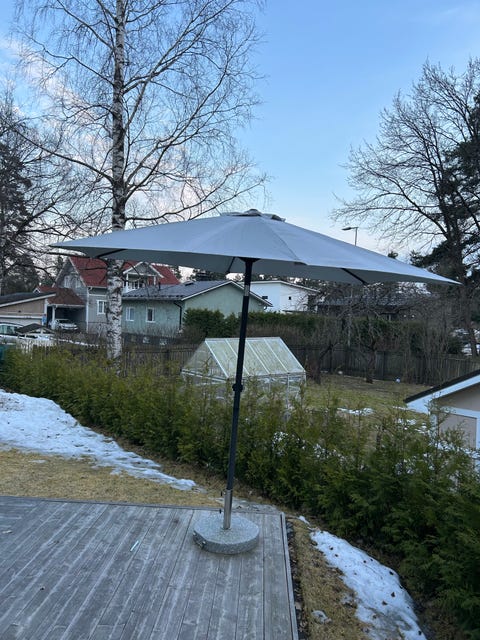 Jos mietit aurinkovarjon ostamista käytettynä, kannattaa ilmoituksia selatessa kiinnittää huomiota luonnollisesti aurinkovarjon koon ja värin lisäksi myös pystytykseen: tarkista tilasta, jonne aurinkovarjoa suunnittelet, mahtuuko sinne keskimastolla seisova aurinkovarjo, vai kannattaako pikemmin harkita sivuvartista tai seinään kiinnitettävää mallia.