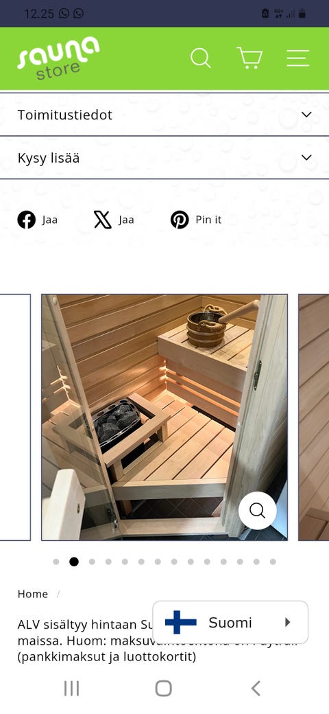 Kun selailet myytäviä saunoja, kannattaa muistaa katsoa tarkkaan mitat ja kunto. Jos olet myymässä saunaasi, kannattaa kertoa myös kokoamisesta ja linkittää alkuperäiseen tuotteeseen, jos netistä löytyy vielä tuotteen sivu tai esimerkiksi rakennusohje. Torista voi toisinaan löytää jopa ilmaisen saunan, josta voi sitten tuunata itselleen sopivan.