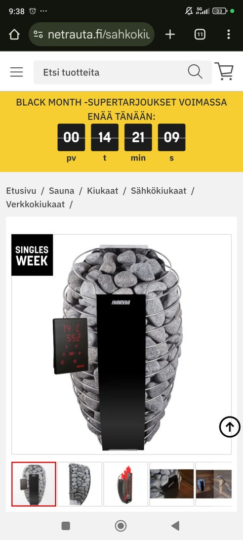 Aurinko ja vuoret300 €Ost. Sähkö kiuas, etä ohjauksella, itsestäänseisovaTuusula, Kellokoski, Uusimaa4 tLisää suosikiksi.