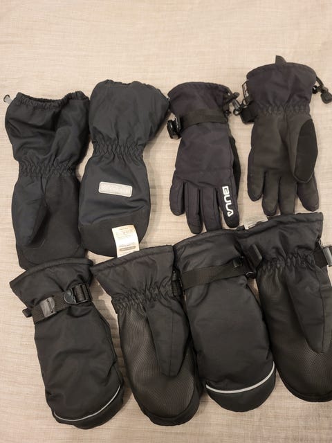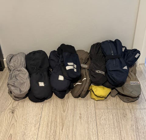 Lasten hanskat menevät liikkuessa ja ryömiessä jatkuvasti likaiseksi, minkä huomaakin pyykkimäärästä. Kotona kannattaakin olla useammat lasten rukkaset ja hanskat. Näistä voi hyvin ostaa ainakin osan käytettynä ja säästää näin vaatebudjetissa.