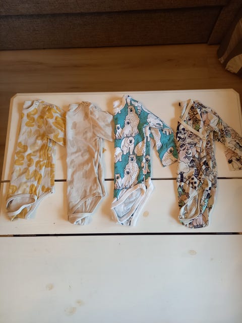 Vauvan body likaantuu usein, ja vaatekaappiin kannattaa ostaa iso varasto