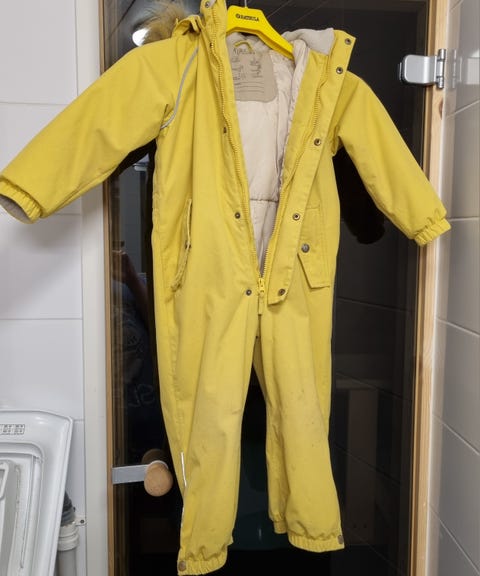 Talvella pienten lasten läheisillä voi ollakin kuumat oltavat, ainakin eteisessä pukiessa: hikipisarat tippuvat otsalta, kun lapselle pitää pukea villahaalari, villasukat, kintaat, pipo tai myssy ja lopulta vielä ulkovaatteet ja talvisaappaat. Ulkovaatteista toppahaalari on usein nopeampi pukea kuin erillinen toppatakki ja -housut, eikä lumi mene helposti sisälle. Myynti-ilmoituksesta kannattaa katsoa talvihaalarin tai muun ulkovaatteen kunto ja esimerkiksi se, miten hyvin hihansuut ja lahkeet saa kiristettyä, onko vaatteessa monta heijastinta ja onko se vedenpitävä.
