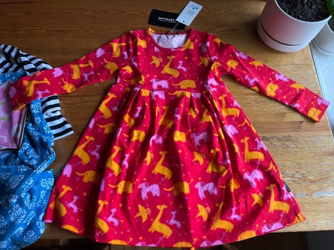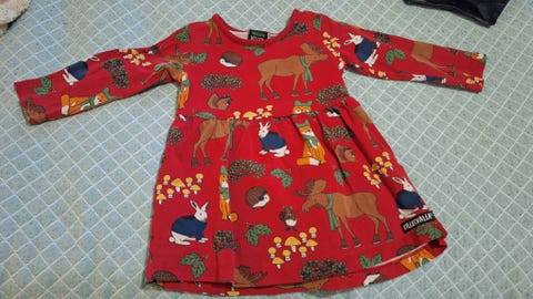 Lasten mekko on kätevä haalarinkin alle, kunhan lisänä on trikoot tai sukkahousut