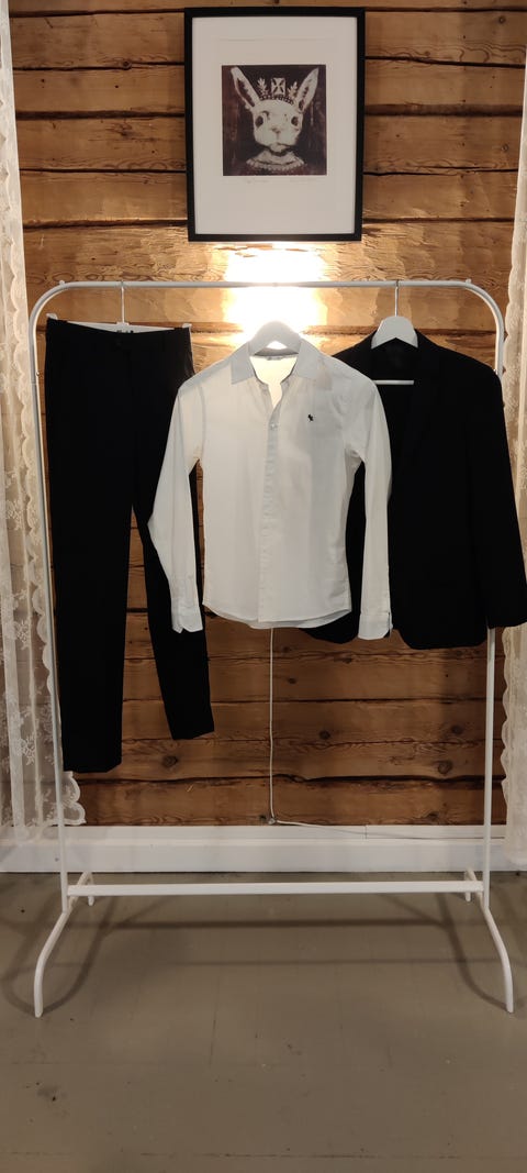 20 €Poikien juhlapuku, suorat housut, pikkutakki ja valkoinen kauluspaitaKoko 152Salo, Salo Keskus, Varsinais-Suomi3 pvLisää suosikiksi.