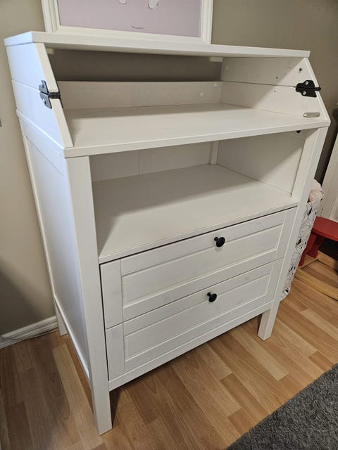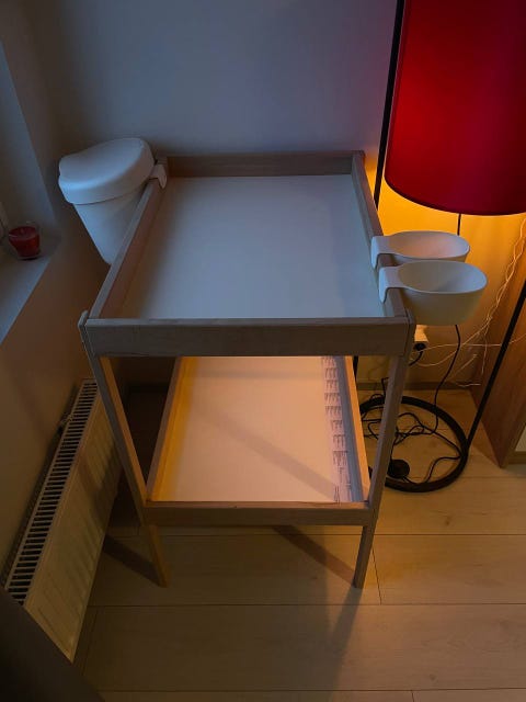 Vauvan hoitopöytä on helppo paikka vaihtaa pienen vauvan vaippaa. Kannattaa kurkata, löytyisikö sopiva käytettynä - Torissa on nytkin 366 ilmoitusta, joissa myydään ja ostetaan näitä.