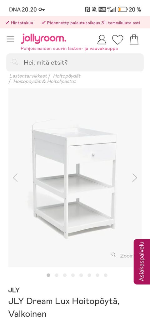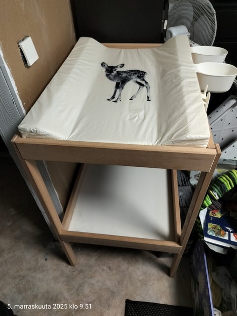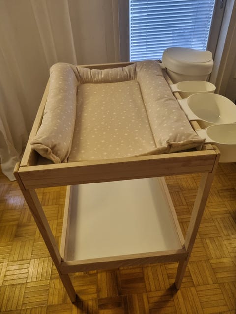 Vauvan hoitopöytä on helppo paikka vaihtaa pienen vauvan vaippaa. Kannattaa kurkata, löytyisikö sopiva käytettynä - Torissa on nytkin 438 ilmoitusta, joissa myydään ja ostetaan näitä.