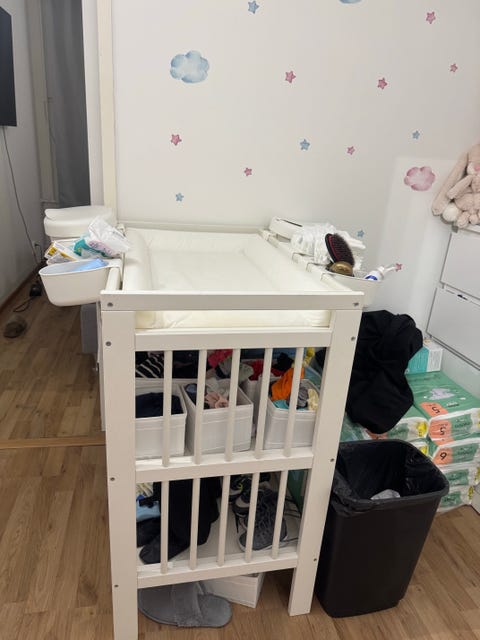 Vauvan hoitopöytä on helppo paikka vaihtaa pienen vauvan vaippaa. Kannattaa kurkata, löytyisikö sopiva käytettynä - Torissa on nytkin 471 ilmoitusta, joissa myydään ja ostetaan näitä.