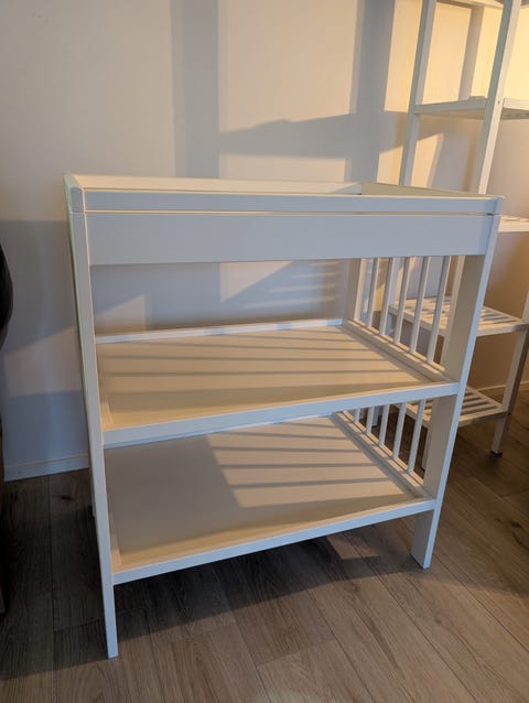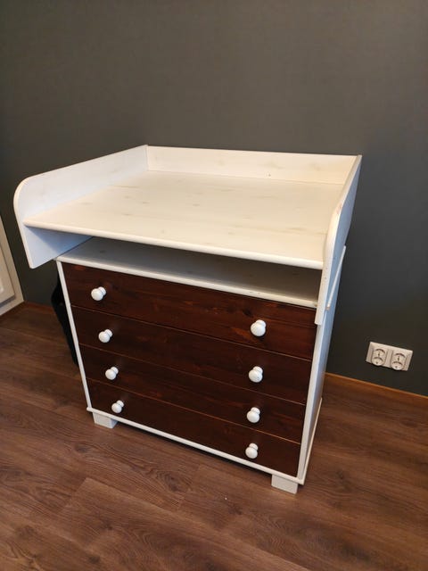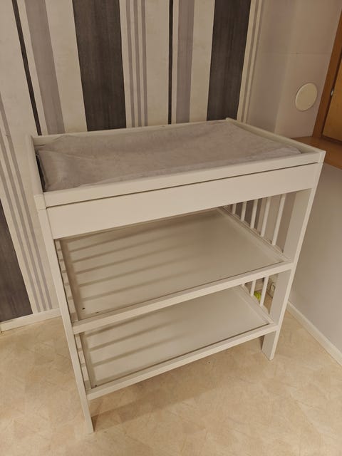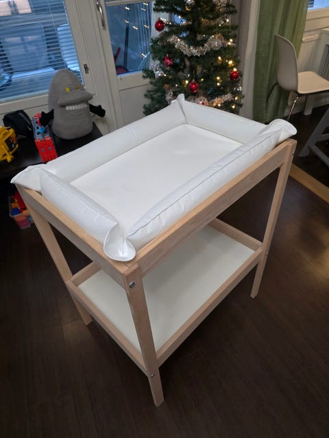 Vauvan hoitopöytä on helppo paikka vaihtaa pienen vauvan vaippaa. Kannattaa kurkata, löytyisikö sopiva käytettynä - Torissa on nytkin 516 ilmoitusta, joissa myydään ja ostetaan näitä.