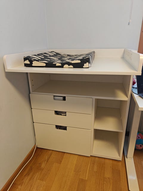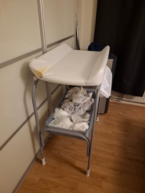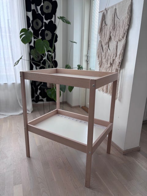 Vauvan hoitopöytä on helppo paikka vaihtaa pienen vauvan vaippaa. Kannattaa kurkata, löytyisikö sopiva käytettynä - Torissa on nytkin 504 ilmoitusta, joissa myydään ja ostetaan näitä.