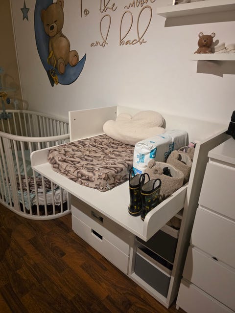 Usein hoitopöytään kuuluu esimerkiksi laatikoita tai koreja, joista on kätevä poimia vauvan tarvikkeita. Pieneen tilaan saattaa sopia helpommin hoitotaso, jonka voi asettaa esimerkiksi lipaston tai pesukoneen päälle. Jos harkitset käytetyn tason tai pöydän ostamista, ilmoituksista kannattaa katsoa tarkkaan kalusteen korkeus, jotta mahdollisimman moni vauvan läheinen pystyy vaihtamaan vaipan sopivalla korkeudella omaa selkää säästäen.