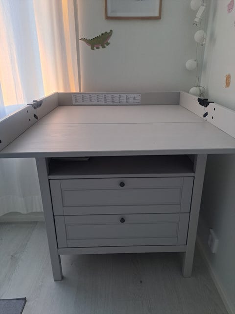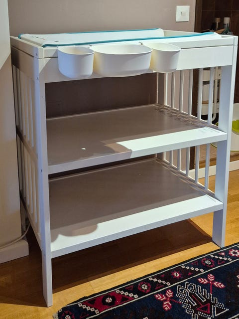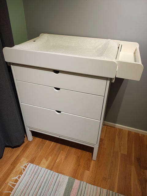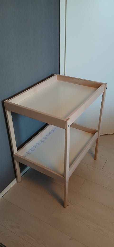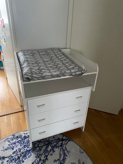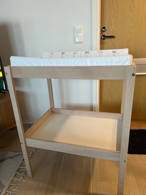 Vauvan hoitopöytä on helppo paikka vaihtaa pienen vauvan vaippaa. Kannattaa kurkata, löytyisikö sopiva käytettynä - Torissa on nytkin 490 ilmoitusta, joissa myydään ja ostetaan näitä.