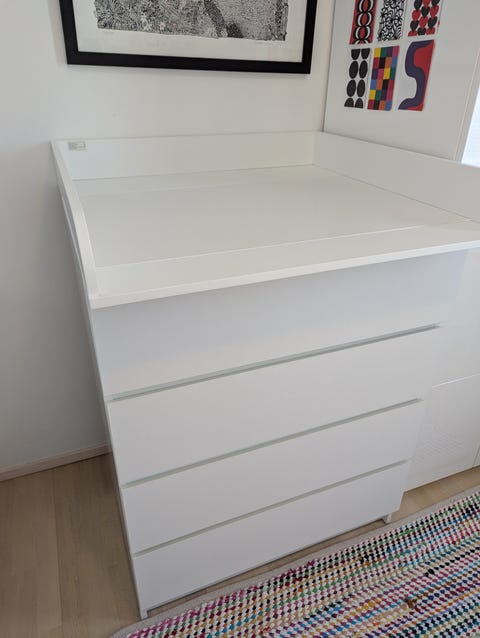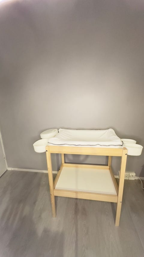 Vauvan hoitopöytä on helppo paikka vaihtaa pienen vauvan vaippaa. Kannattaa kurkata, löytyisikö sopiva käytettynä - Torissa on nytkin 495 ilmoitusta, joissa myydään ja ostetaan näitä.