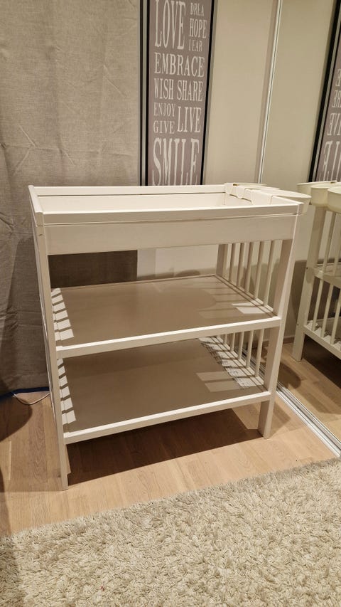 Vauvan hoitopöytä on helppo paikka vaihtaa pienen vauvan vaippaa. Kannattaa kurkata, löytyisikö sopiva käytettynä - Torissa on nytkin 479 ilmoitusta, joissa myydään ja ostetaan näitä.