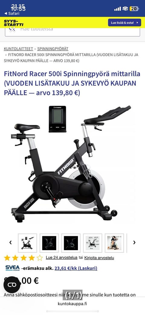 Uuden kuntopyörän hankinta on merkittävä investointi. Kun ostat käytetyn kuntopyörän uuden sijaan voit säästää selvää rahaa. Lisäksi käytetyn ostaminen on ilmastoteko. Kun selaat myydään kuntopyörä -ilmoituksia, kannattaa kiinnittää erityistä huomiota kuntopyörän ominaisuuksiin ja mittoihin. Torin kautta saat myös itsellesi ylimääräisen kuntopyörän helposti kiertoon.