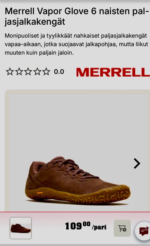 60 €Merrell Vapor Glove 6 paljasjalkakengät koko 40Koko 40 MerrellPori, Impola, Satakunta2 pvIlmainen toimitus•Osta hetiLiikkeessä oleva kuorma-autoToriDiiliLisää suosikiksi.