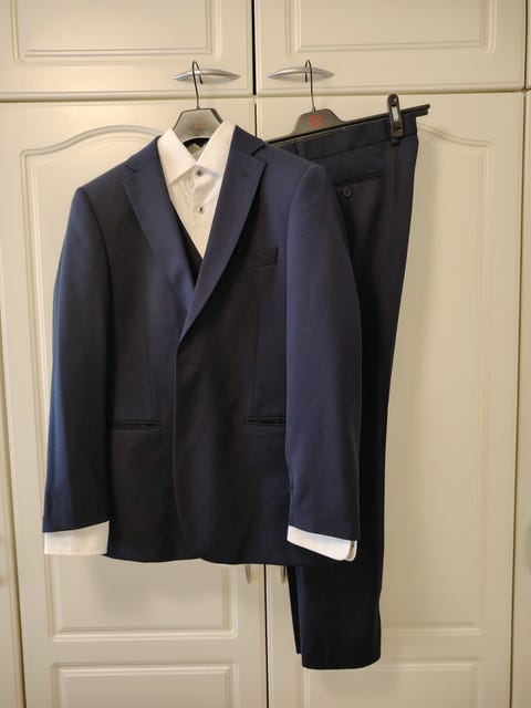 70 €Miesten tummansininen puku + liivi 48/50 Riley Shelby villasekoiteKoko 48Turku, Kuninkoja-Mälikkälä, Varsinais-Suomi26.10.Lisää suosikiksi.