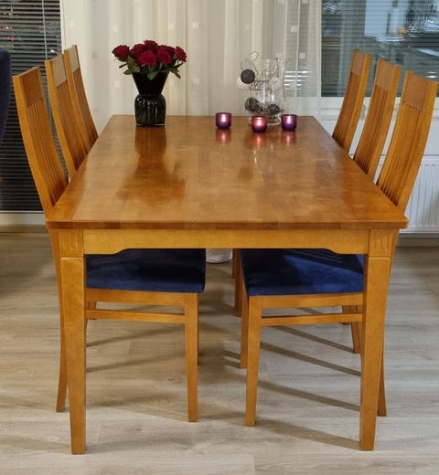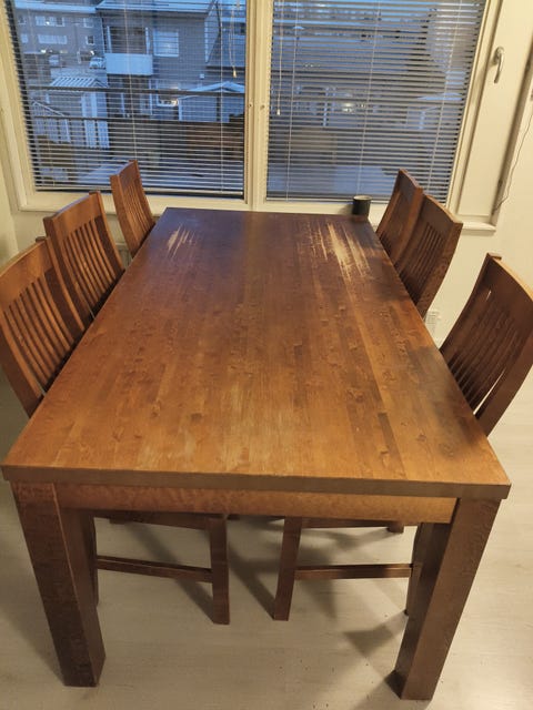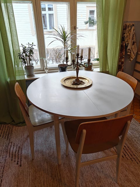 Ruokailuryhmä on usein melko arvokas hankinta ja usein kotona kovassa käytössä. Esimerkiksi taloudessa, jossa on yksi tai useampi pieni lapsi, ruokapöytään ja tuoleihin saattaa tulla naarmuja ja tahroja. Kannattaakin miettiä, voisiko käytetty pöytä olla omaan tarpeeseen riittävä ratkaisu. Ostamalla käytettyjä kodin kalusteita tuet myös kiertotaloutta!