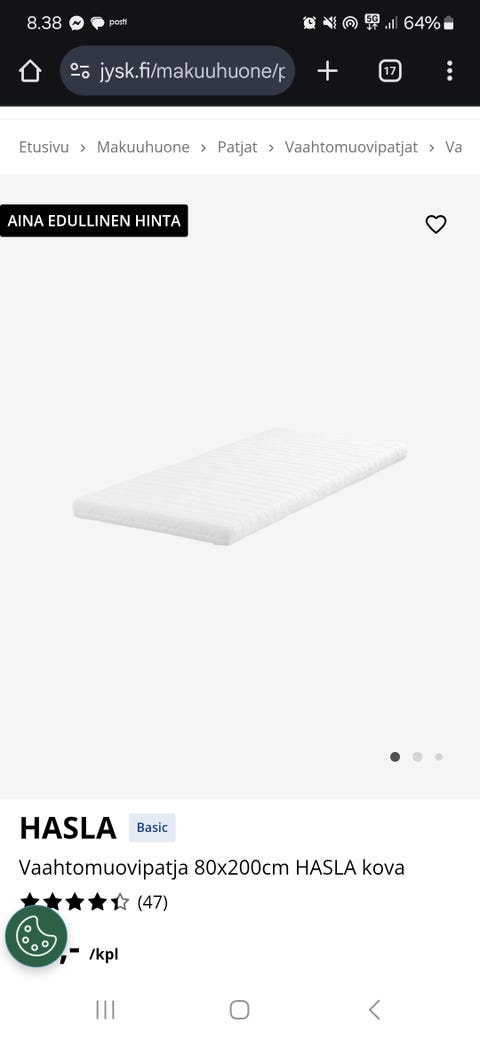 Patja omaan käyttöön tai vieraspatjaksi - kaikkea nukkumiseen voi hankkia käytettynä! Torissa on 1 927 ilmoitusta, joista löydät patjoja.