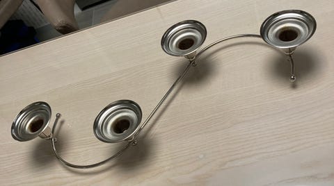 Hanki useampi erilainen, mutta samantyylinen kynttilänjalka ja tee niistä kollaasi juhlapöytään