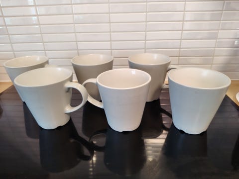 Yksittäinen kahvikuppi tai erilaisia, yhteensopivia mukeja