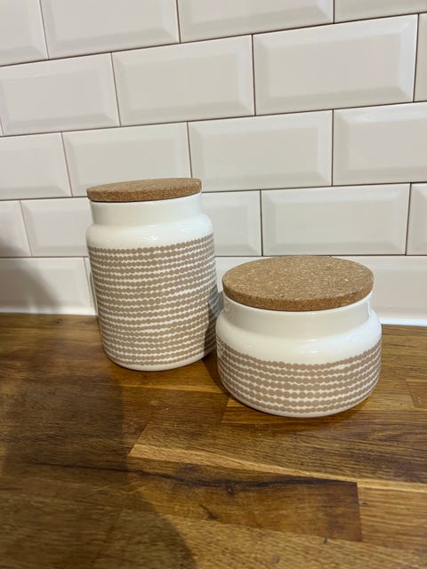 Torista voit löytää sekä tavallisia säilytysastioita että uniikkeja, vanhoja purkkeja, sirottimia ja pulloja keittiöösi!